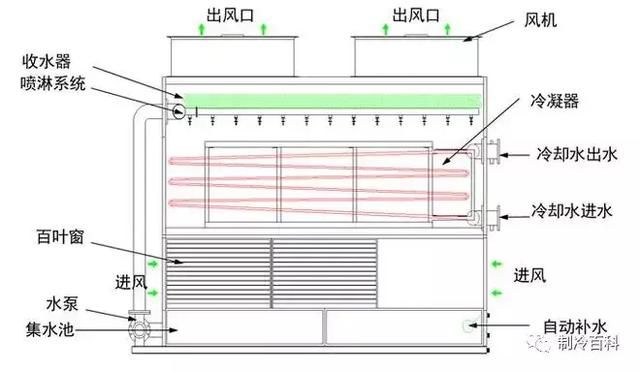 閉式冷卻塔分為內外循環水系統。1.內循環系統是如何節水的?內循環水(或其他需要冷卻的介質)在封閉的線圈中循環,完全隔離外部世界,因此水沒有蒸發和消耗。與傳統的開式冷卻塔相比,它節省了大量的循環水。(由